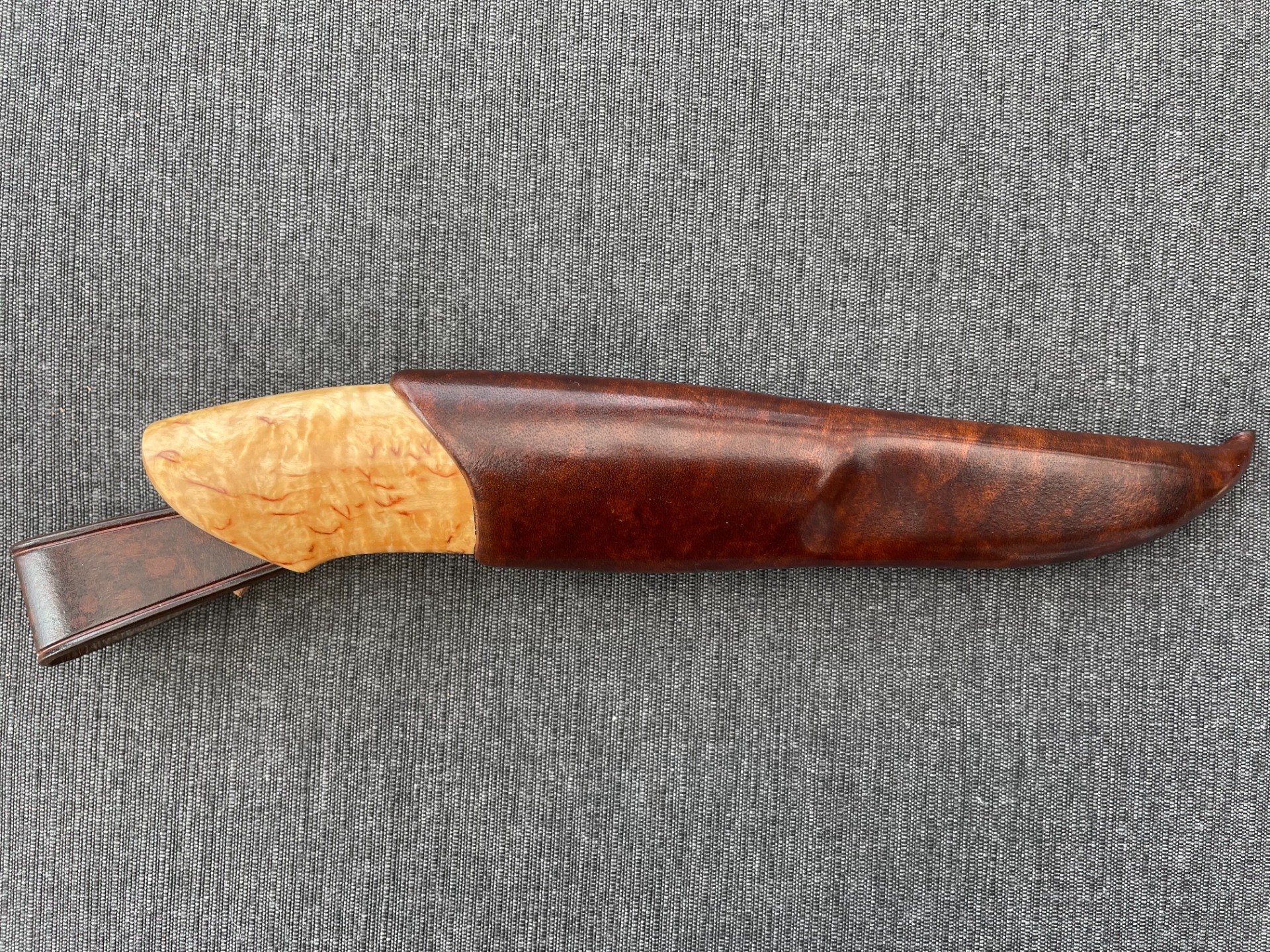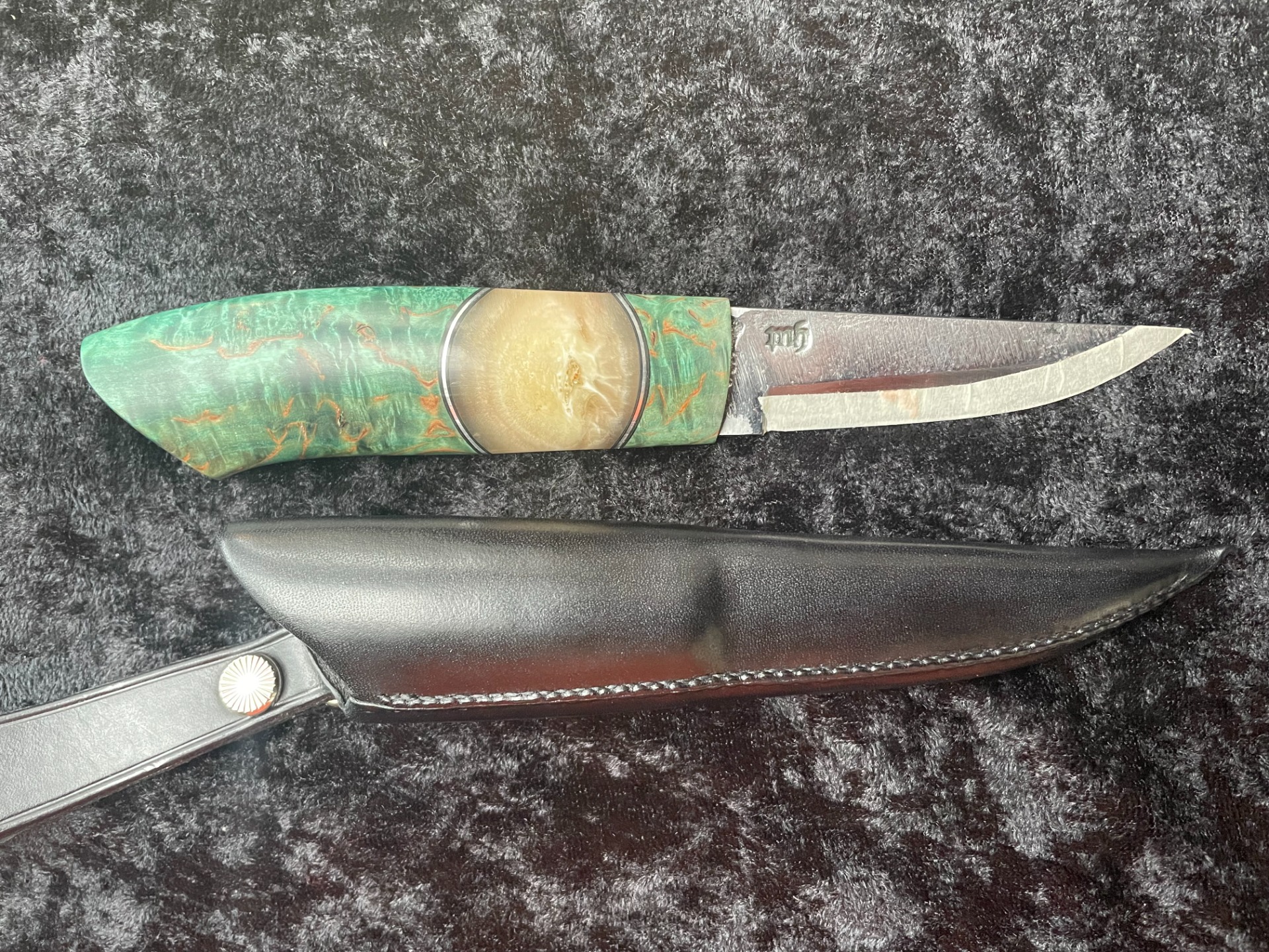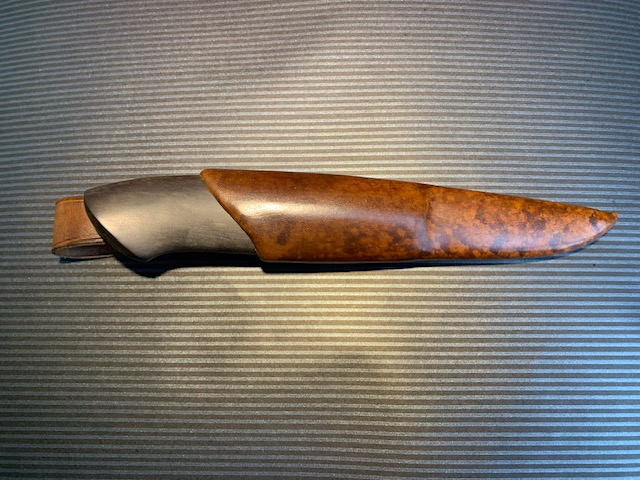 Skaft: Stabilisert valbjørk og frontholk i farget elghorn.