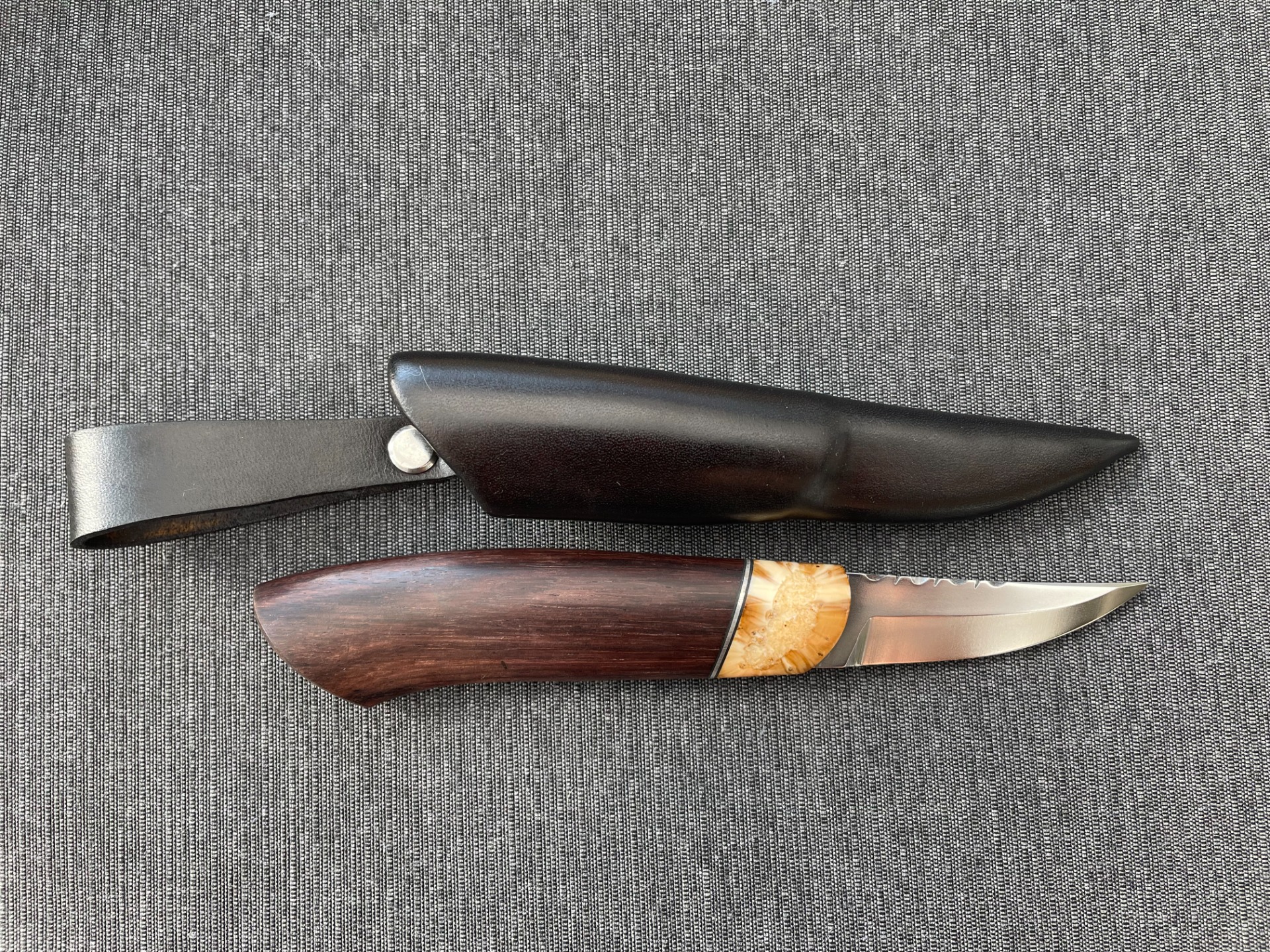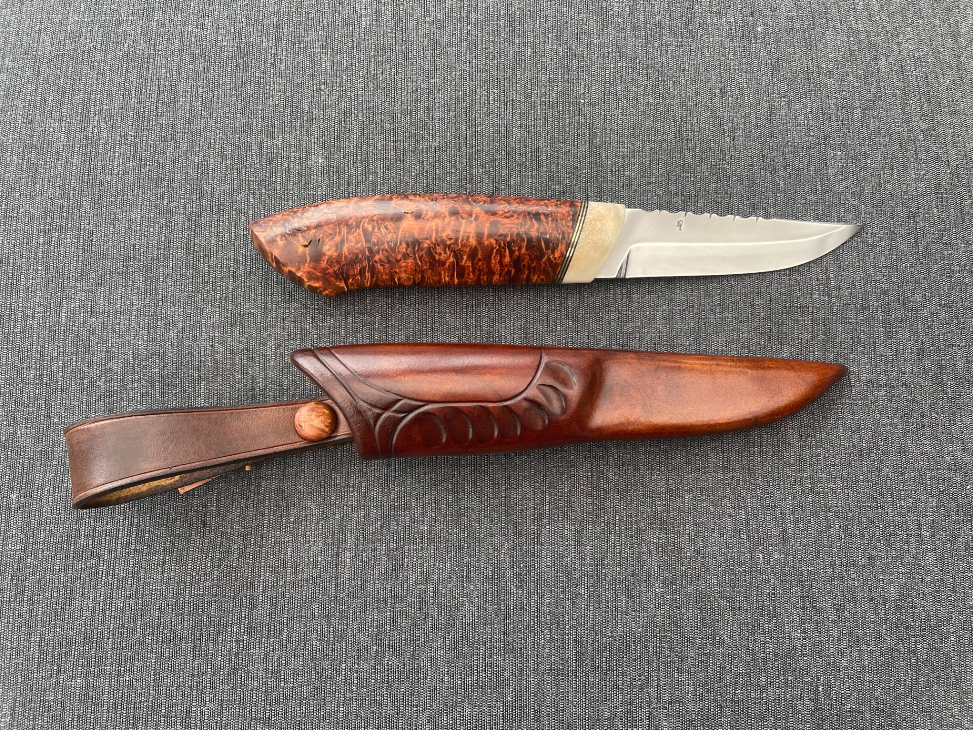 Denne kniven har vunnet 1. premie på Nordiske jakt og fiskedagene på Elverum 2025 i klassen brukskniv.