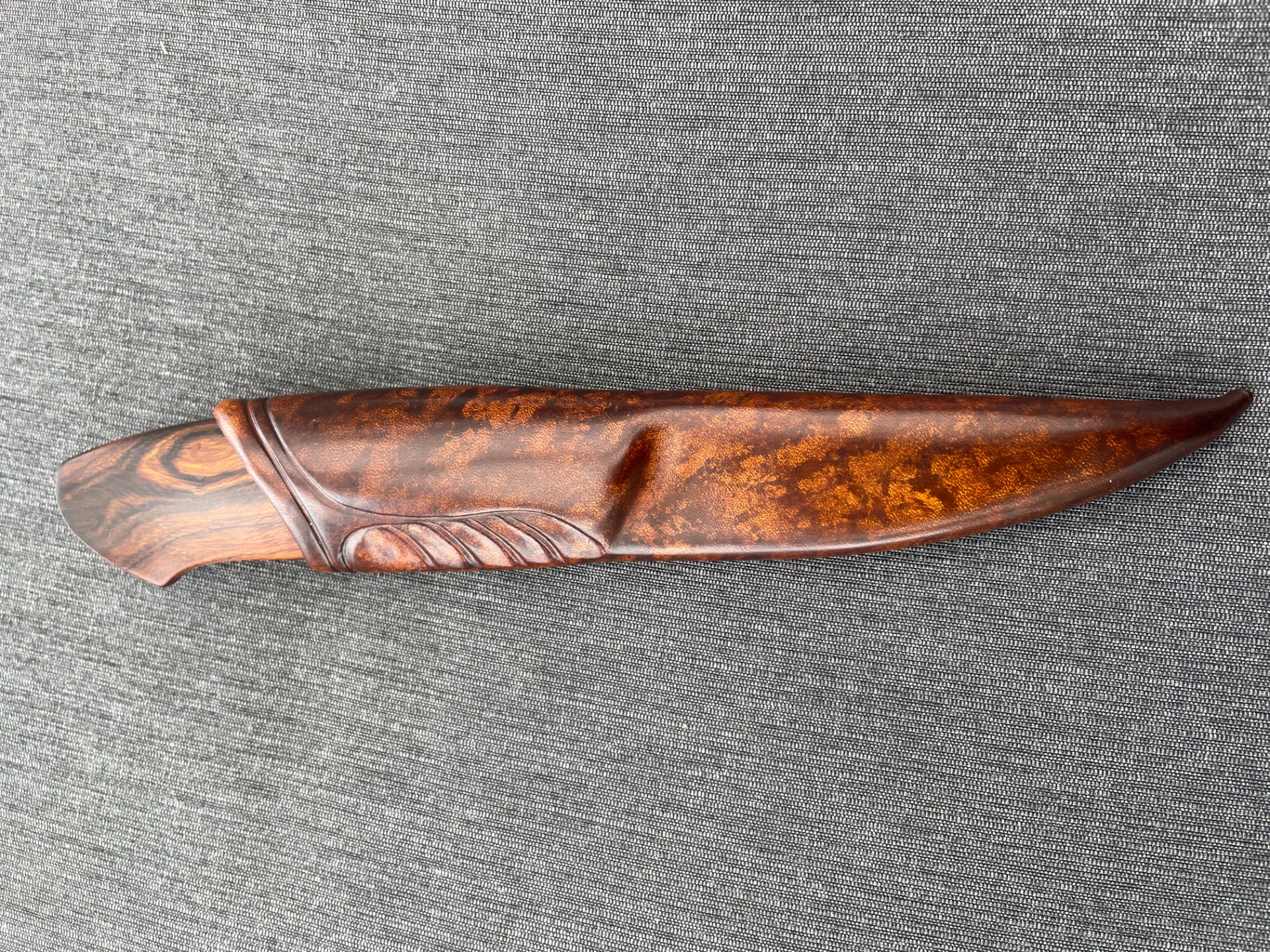 Blad: 3-lags laminert, "flåblad form", smidd av Asbjørn Solheim.