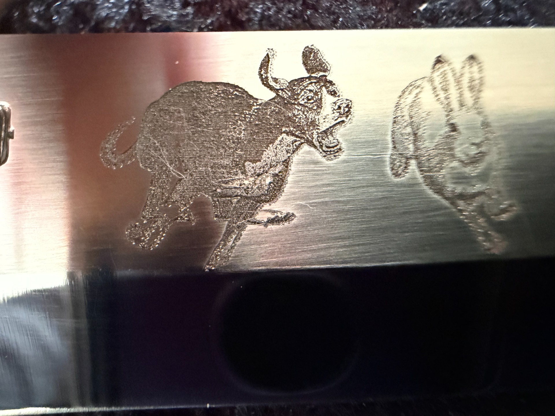 Blad: Aebl m/lasertegnet motiv av hund og hare fra Halvor Jøntvedt.